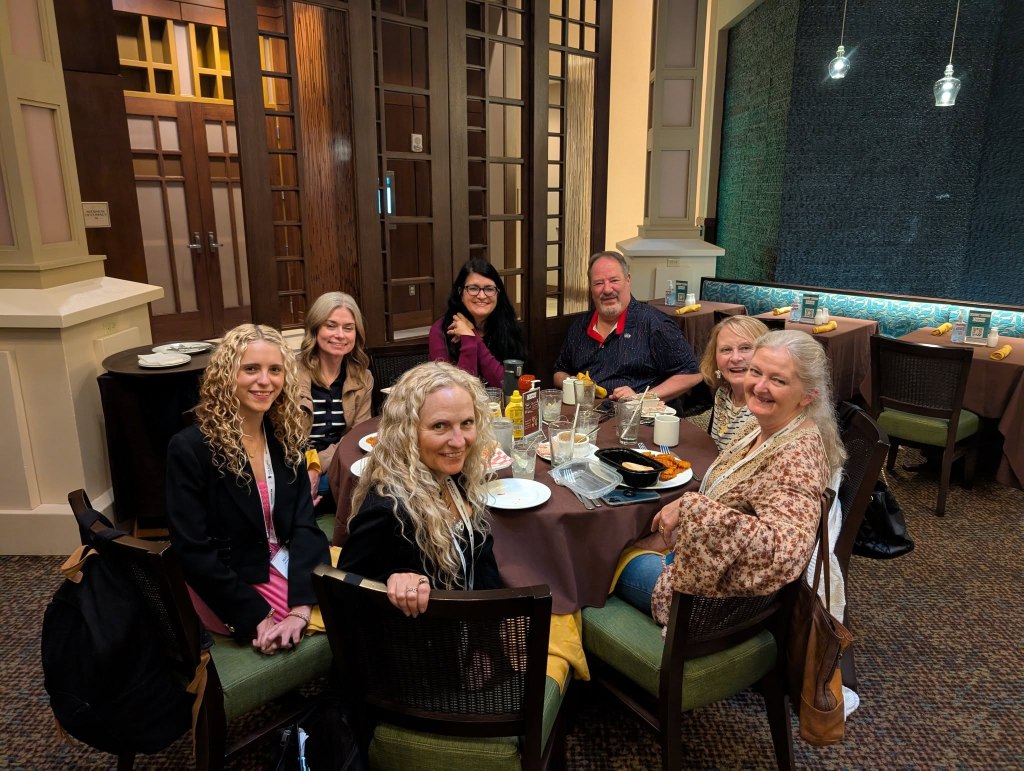 PHOTO 1: ICVM October 2025, Cheryl with Bob, his wife, Margie, writer, Heather Blanton, Actresses Denise Gossett & Riley Beeson, and writer, Rene Gutteridge.